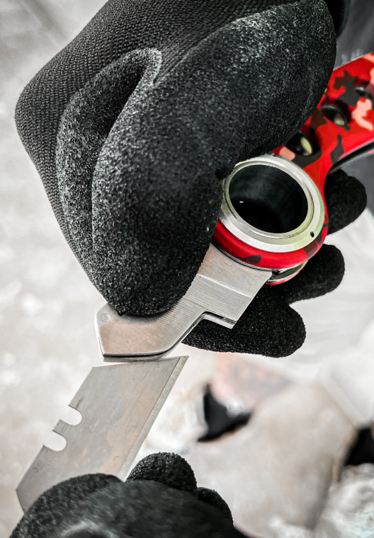 Blades can be simply removed and replaced with the press of a button.