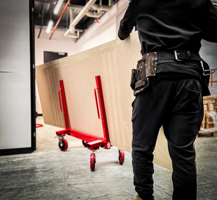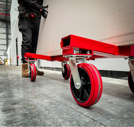These carts are ergonomically designed to ensure easy manoeuvrability on the job site, able to fit through narrow spaces and in and around tight corners. Furthermore, they can quickly and effortlessly convert to a flatbed when required on the job site. The unit itself only weighs 39kg whilst being able to carry a maximum weight of 1.4 tons (1360kg). The upright handles dismantle in seconds for transportation and storage and the stowed handles form a carry handle. The carts are available with optional braking and swivel lock casters, depending on the user requirements. A Skid Plate base panel is also available, which expand the carts uses; such as transporting equipment or smaller material around the job site.